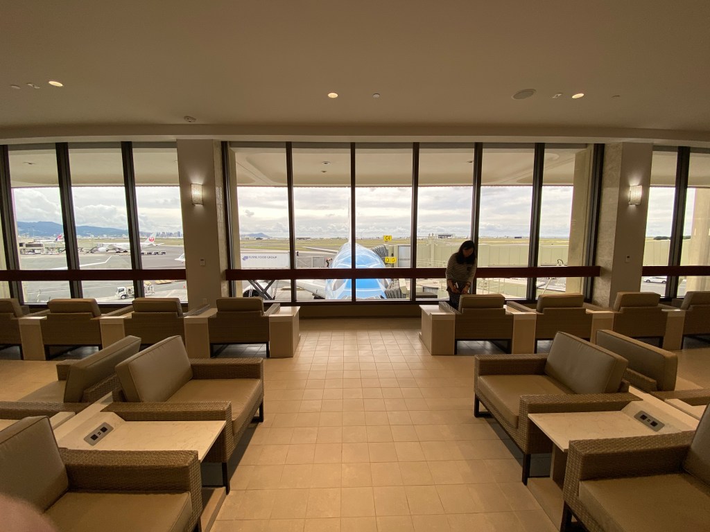เนื่องจากว่าจากหน้าต่าง lounge นี้ เราจะสามารถนั่งชมเครื่องที่เราจะขึ้นไปบินได้จากหน้าต่างบานใหญ่ floor to ceiling ได้เลย แน่นอนว่าต้องไปยึดตรงนั้น